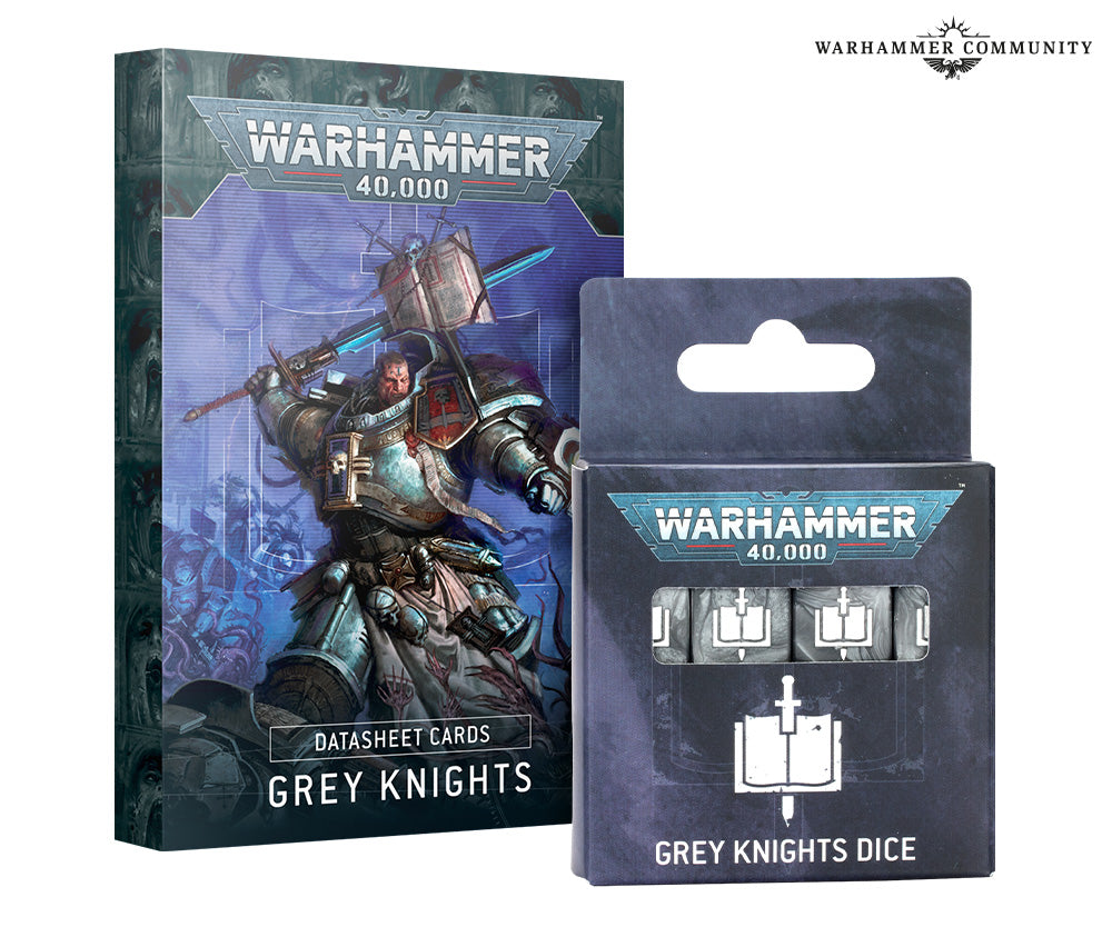 You can complete your collection with a set of 16 pearlised grey dice with white pips and the Grey Knights faction icon on the six face.